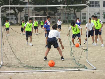 (写真中:サッカー講座 審判など進行もしっかりしてくれました)