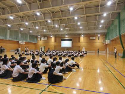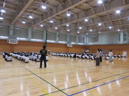 5月の火災避難訓練とは別に、非常事態に対応して体育館へ避難する訓練です。