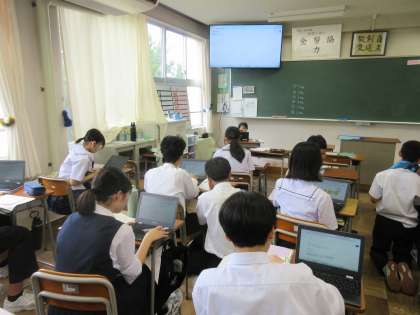 2学年のようすです。 (写真上:2A 音楽 歌唱テストです『翼をください』) (写真下:2B 国語)