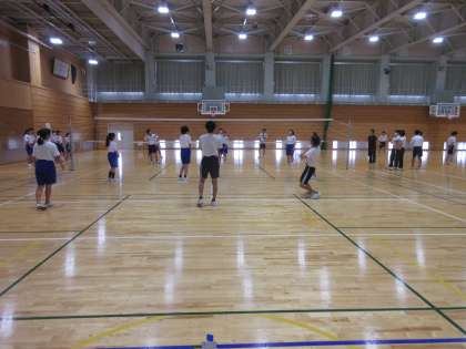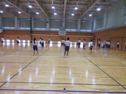 3学年のようすです。 A・B組合同で、本日の体育はバレーボールです。