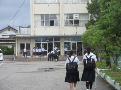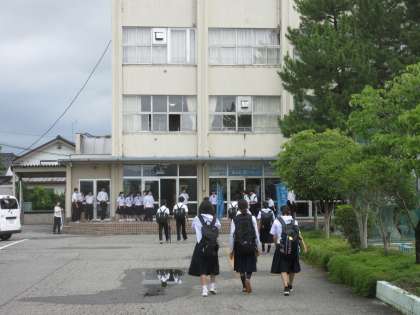 生徒玄関では2Bの4〜6班が、あいさつ運動を頑張ってくれました。