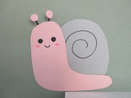 (写真上:保健室前の掲示板には、保健委員が作ってくれたカタツムリも登場しました。くるっとしたところが、楽器のホルンのようでかわいいですね!)