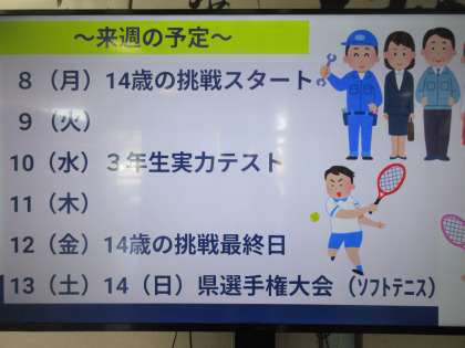 来週から、2学年は「社会に学ぶ『14歳の挑戦』」に参加します。