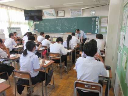 3学年 授業風景 公開日 2024/07/06 更新日 2024/07/06 第3学年 3学年のようすです。 (写真上:3A 数学 平方根をふくむ計算) (写真下:3B 英語 ALTの先生と発音の確認)