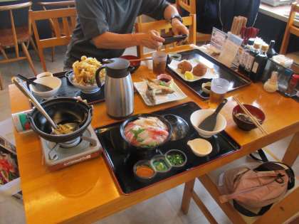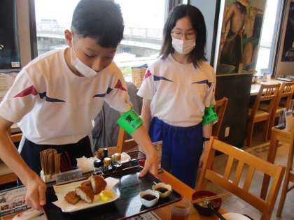 (写真上:水橋食堂 漁夫 お客様にお出しする昼食を配膳しています)