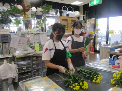 (写真上:フローリストボンマルセ フラワーアレンジメント以外でも、いろいろな体験を積ませていただいています)