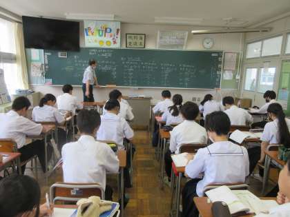3学年 授業風景 公開日 2024/07/12 更新日 2024/07/12 第3学年 3学年のようすです。 (写真上:3A 社会「敗戦後の日本の社会の変化」) (写真下:3B 数学「2次方程式『解の公式』」)