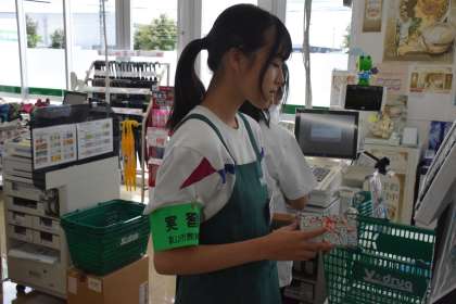 (写真下:V,drug滑川西店 レジ打ちをさせていただきました。「1,078円になります」)
