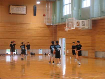 (写真上:男子バスケットボール部 朝早くから練習に取り組んでいます)