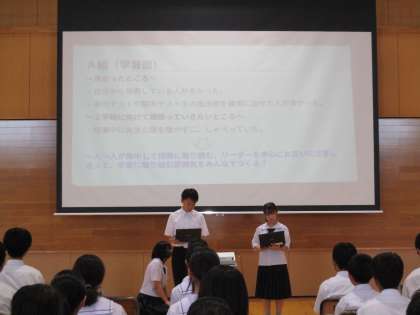 各クラスの振り返りを班長が発表しました。(写真上)