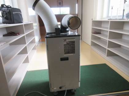 (写真上:スポットエアコン 冷たい空気を送ってくれます)