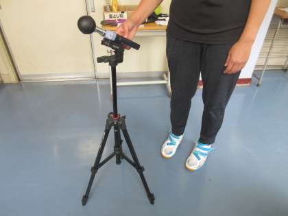 (写真下:WGBTチェッカー 熱中症指数を測っています)