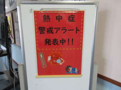 (写真上:熱中症アラートが出た場合、生徒玄関と体育館玄関にこのような掲示が出されます)