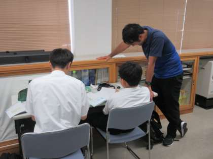 本日の「夏勉」 公開日 2024/07/29 更新日 2024/07/29 最近の水中の様子 7/29(月) 本日の午前中も、会議室では「夏勉」に取り組む子供たちの姿が見られました。 (写真上:1年生から3年生まで、中には部活動が終わってから参加する人もいます) (写真中:理科の質問中。丁寧に答えてくれます) (写真下:仲間や先生に質問したり、意見交換をしたりできるのが「夏勉」のよいところですね)