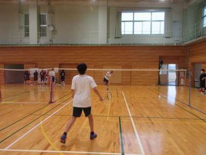 (写真:男女バドミントン部「組み合わせは決まった?」「一緒にやらない?」)