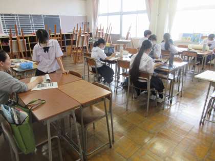 本日の部活動 その2 公開日 2024/08/01 更新日 2024/08/01 最近の水中の様子 (写真上:陸上競技部 高跳びの練習用具をみんなで用意しています) (写真下:美術部 顧問の先生と活動内容について相談しています)