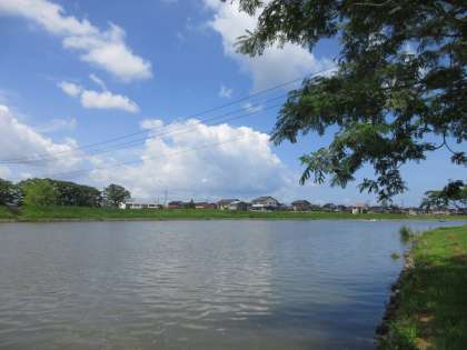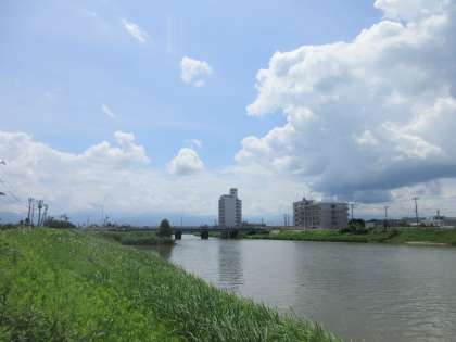 白い雲の下、白岩川もゆったり流れています。