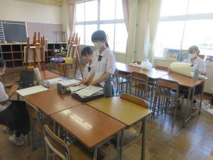 (写真下:美術部 来週の活動について話がありました)