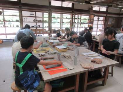 美術部:陶芸を体験してきました! 公開日 2024/08/07 更新日 2024/08/07 最近の水中の様子 8月7日(水)今日は、三成中学校の美術部の皆さんと、学校を離れて射水市の「匠の里」で陶芸の体験をしてきました。水中生のほとんどは、初めての体験でしたが、マグカップや皿、花器等、それぞれ二つずつ作ることができました。焼き上がるのがとても楽しみです。
