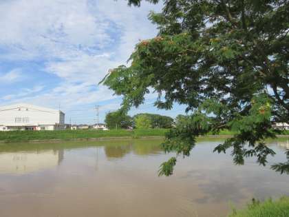 8/26(月) 昨日の雨の影響で、白岩川は濁っています。