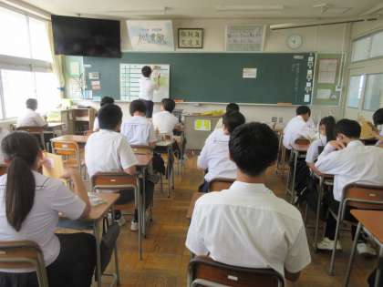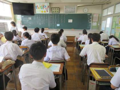 3学年のようすです。 (写真上:3A 始業式後、課題の提出です) (写真下:3B)