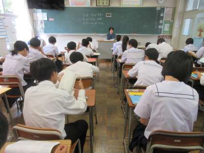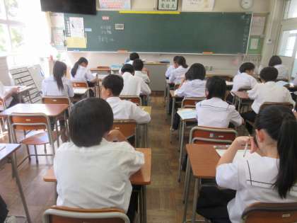 (写真上:1A 最初の10分はテストに向けた自習に取り組みます)