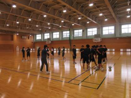 (写真上:1A 保健体育 本日は体育館でサッカーです)