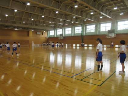 3年生の保健体育の授業では、A・B組が男女に分かれ、サッカーに取り組んでいます。