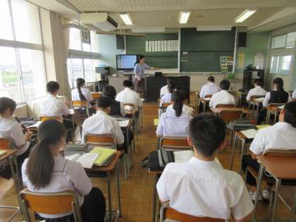 (写真上:2A 音楽 リコーダーのチューニングの後、『オーラ・リー』を吹きました)