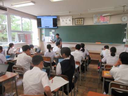 (写真下:2B 数学 「クロムブックで問題を作り、仲間に解いてもらおう」)