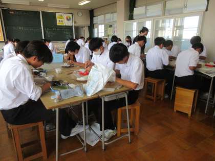 3学年のようすです。 (写真上:3A 美術「石材加工」) (写真下:3B 社会「民主政治とは?」)