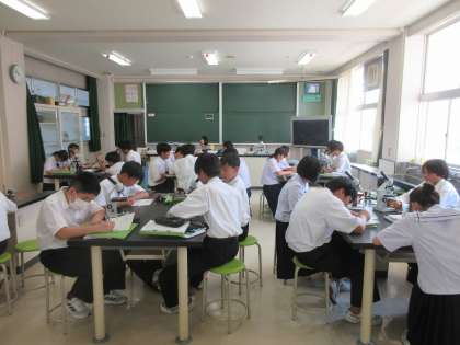 1学年 授業風景 公開日 2024/09/05 更新日 2024/09/05 第1学年 1学年のようすです。 (写真上:1A 理科「水に溶けた物質を取り出す」顕微鏡を使いました) (写真下:1B 英語 単元テストの解説をしていただきました)