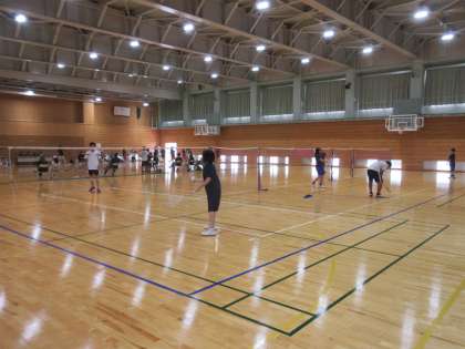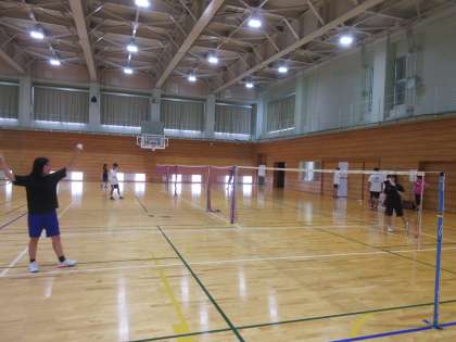 (写真下:女子バドミントン部 男女で声をかけ合って練習に取り組んでいます)