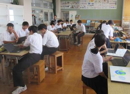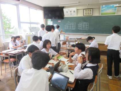 2学年 授業風景 公開日 2024/09/09 更新日 2024/09/09 第2学年 2学年のようすです。 (写真上:2A 理科 元素の性質について調べ合い、教え合いです) (写真下:2B 美術「メッセージを伝えよう」)
