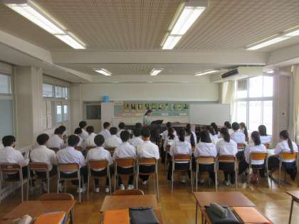 3学年 授業風景 公開日 2024/09/09 更新日 2024/09/09 第3学年 3学年のようすです。 (写真上:3A 理科「水平面上では、台車はどのような運動をするのだろうか」) (写真下:3B 音楽 合唱曲の音とりをクラスのみんなでしています)
