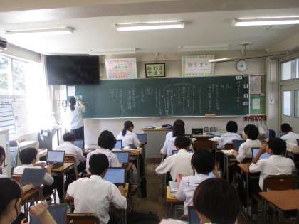 1学年 授業風景 公開日 2024/09/10 更新日 2024/09/10 第1学年 9/10(火) 砺波校外学習を明日に控え、1学年は学習に励んでいます。 (写真上:1A 英語「Unit5」) (写真下:1B 国語「大人になれなかった弟たちに・・・」)