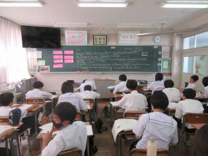 (写真下:1B 英語 そろそろ英文を読んだり書いたりすることに慣れたでしょうか?)