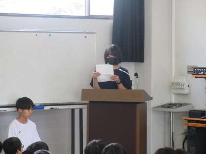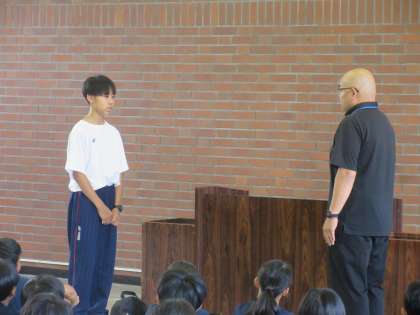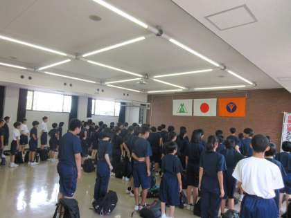 砺波青少年自然の家に着きました。三成中の生徒と合流し、入所式が行われました。代表生徒は入念に準備をしていました。