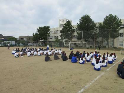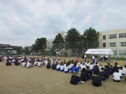 本日の団活動 その2 公開日 2024/09/18 更新日 2024/09/18 最近の水中の様子 4限の競技練習後、みんなで集まりました。 (写真上:青嵐団) (写真中:赤嶺団) (写真下:黄雲団) 各団リーダーから、今日の振り返りの言葉がみんなにかけられました。 「みんな、声がよく出ていてよかったです!」 「素早く動いてくれて、練習がはかどりました!」 9/20(金)には予行があります。団活動や種目に加え、係活動などにも積極的に取り組んでいきましょう!