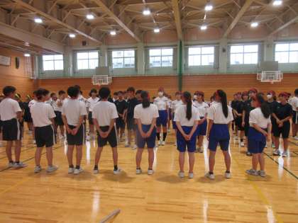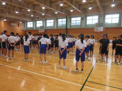 エール交換 公開日 2024/09/19 更新日 2024/09/19 最近の水中の様子 エール交換の練習です。 (写真上:青嵐団 リーダーがみんなに気合のこもった声をかけています) (写真中:赤嶺団 「しっかり声を出していくよー!」) (写真下:黄雲団 「負けずに声を出してー!」) どの団も、力強い掛け声を響かせてくれました。