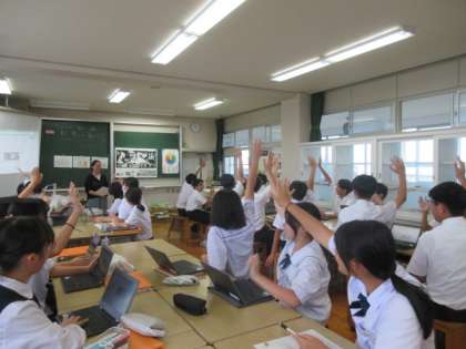 2学年のようすです。 (写真上:2A 美術) (写真下:2B 英語)