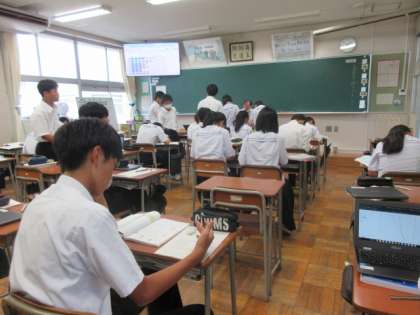 3学年のようすです。 (写真上:3A 数学) (写真下:3B 音楽)