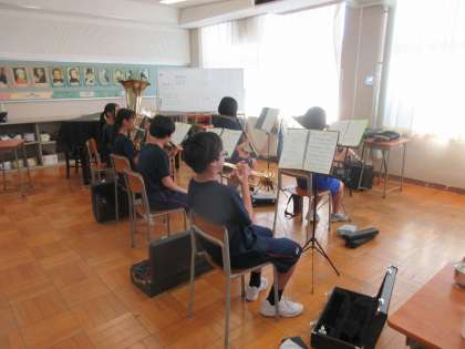 休日の部活動 その2 公開日 2024/09/25 更新日 2024/09/25 最近の水中の様子 9/24(火)は、学校公開日の振替休業日です。 校内からは、部活動に取り組む子どもたちの元気な声が聞こえてきます。 (写真上:吹奏楽部 木管と金管に分かれて曲の練習後、合奏です) (写真中:男子バスケットボール部 「3ポイントシュートを決めるよ!」) (写真下:女子ソフトテニス部)