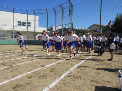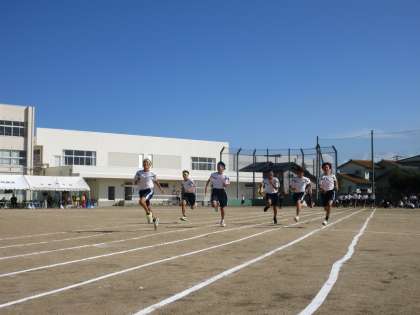 (写真上:プログラム6番、2年女子短距離走です) (写真下:プログラム7番、2年男子短距離走です)