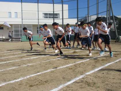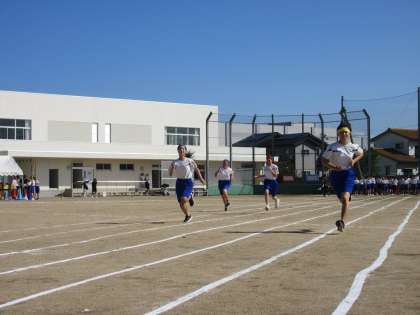 (写真上:プログラム8番、3年女子短距離走です) (写真下:プログラム9番、3年男子短距離走です)