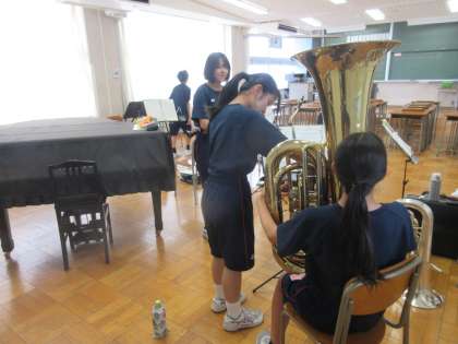 休日の部活動 公開日 2024/09/28 更新日 2024/09/28 最近の水中の様子 9/28(土) 体育大会の疲れも知らず、水中生は本日も部活動を頑張っています。 (写真上:吹奏楽部 楽譜を配ってどんどん練習を進めていきます) (写真中:女子バスケットボール部 新庄中学校、早月中学校と練習試合です) (写真下:男子バスケットボール部 上滝中学校と練習試合です)