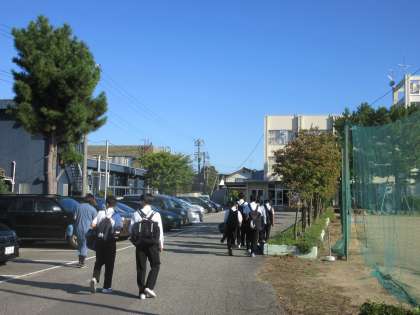 本日から10月です。青空の下、子どもたちが元気に登校してきました。