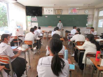 2学年のようすです。 (写真上:2A 音楽 合唱コンクールのクラス合唱曲を聴いています) (写真下:2B 国語)