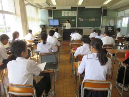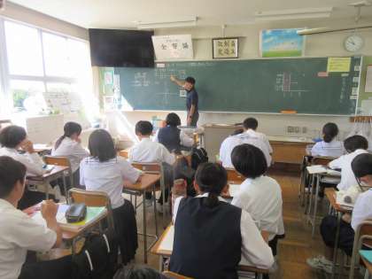 2学年 授業風景 公開日 2024/10/03 更新日 2024/10/03 第2学年 2学年のようすです。 (写真上:2A 数学「表・式・グラフから一次関数の変域を考えよう」) (写真下:2B 音楽『いのちの歌』を聴いています)