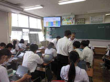 3学年のようすです。 (写真:3B 社会「自由権には身体・精神・経済活動の自由がある」)